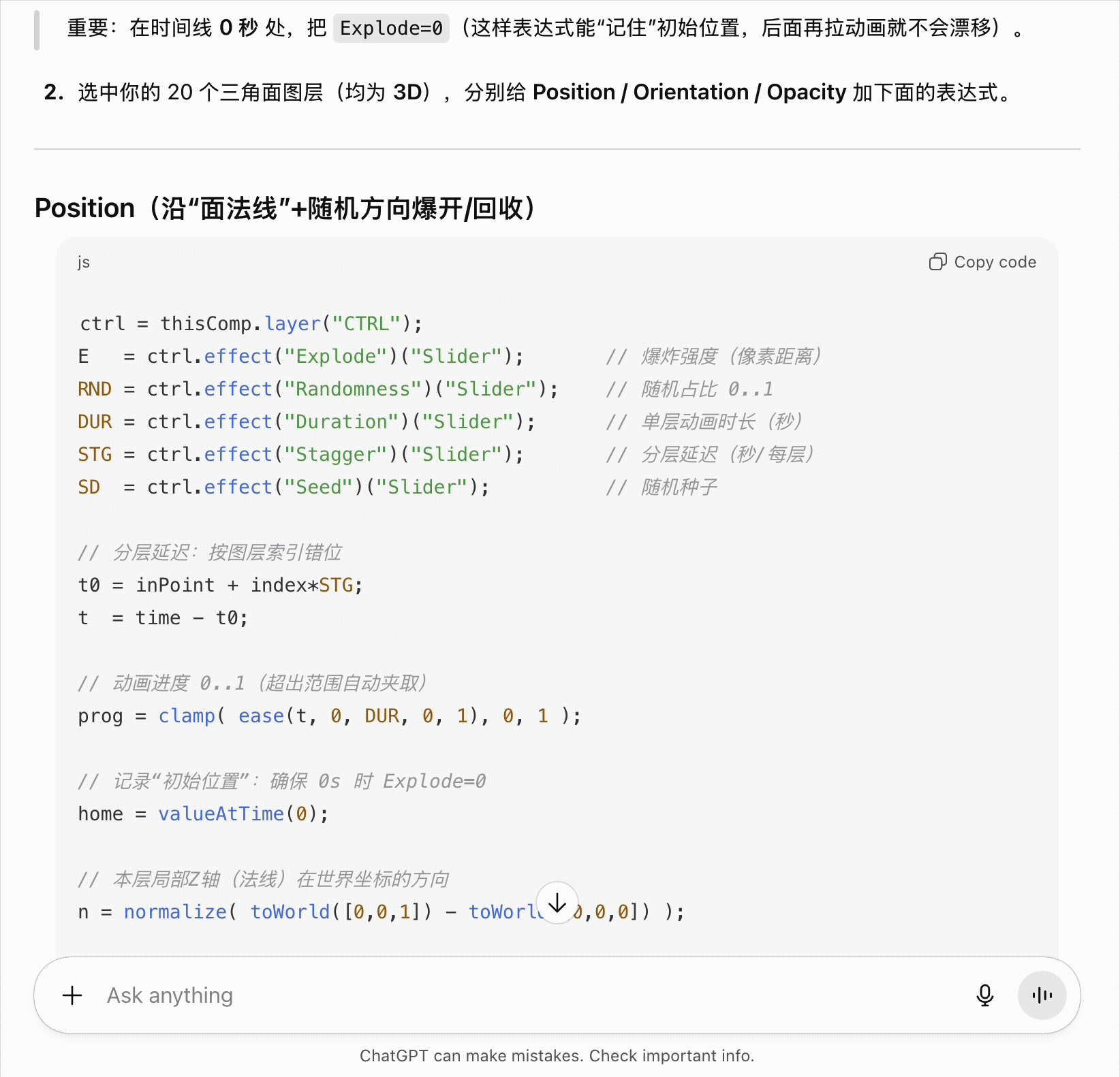 I used Chatgpt to create expressions on Position and Orientation to make the pieces move randomly while looking realistic.