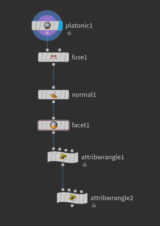 With the Plantonic Solid inside Houdini, I was able to create a polyhedron much easier than in After Effects. The Facet and Normal SOP enable to break the obejct into pieces, the Attribute Wrangle was able to move hte pieces. By creating a explosion tool with script provided by AI, I was able to control the amount of explosion by he amount slider.
