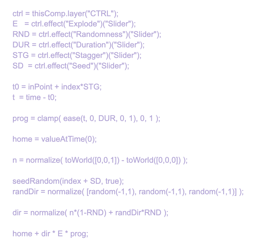 Then I created 5 slider to give more control of the explosion.